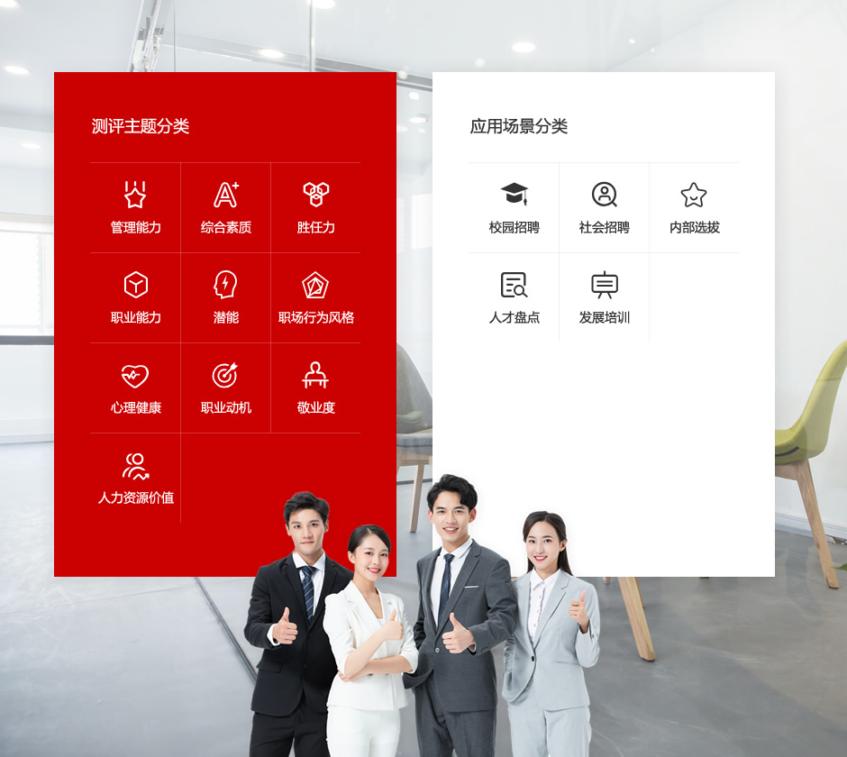 萬保人力可為企業(yè)提供管理能力、勝任力、職業(yè)能力、潛能、職業(yè)動機、行為風格、心理健康等多種能力和素質(zhì)類測評內(nèi)容;適用場景涵蓋企業(yè)校園招聘、社會招聘、內(nèi)部選拔、人才盤點和儲備干部發(fā)展測評等;更能精準為企業(yè)高、中、基層員工因崗量身制定測評方案,幫助企業(yè)精準選擇崗位人才。
