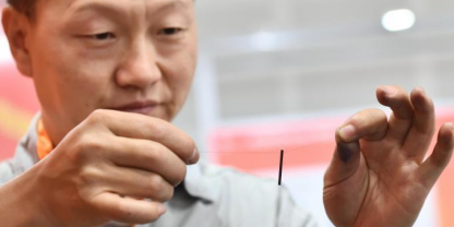 6月18日,山西省太原市,職業(yè)技能大賽選手用發(fā)絲穿鉛筆芯,展示“鉛筆芯上鉆微孔”成果。當(dāng)日,第五屆山西省職業(yè)技能大賽暨第三屆全國技能大賽山西選拔賽開賽。本屆大賽設(shè)46個賽項(xiàng),來自29支代...
